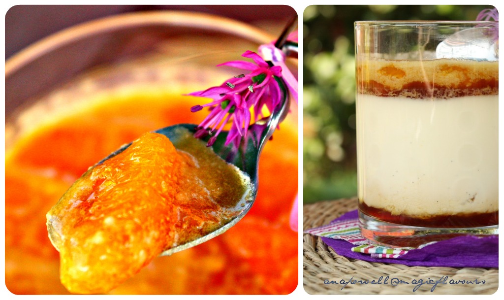 ✻Pour some of the caramelised orange into glasses, then the panna cotta mixture and top it up with some more caramelised orange, then place in the fridge to set for at least 5 hrs.